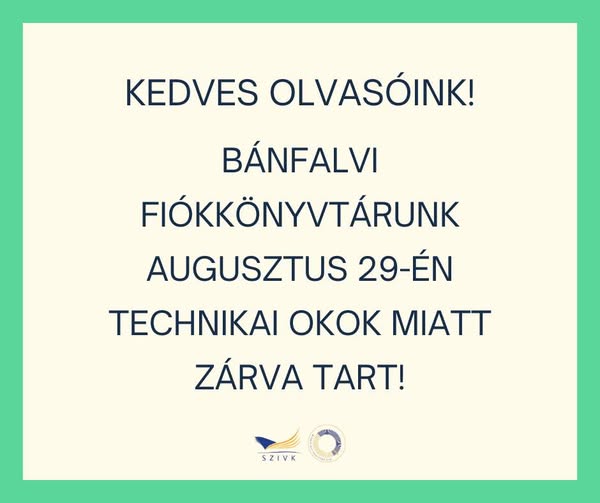 Bánfalvi könyvtárunk szabadság miatt zárva lesz