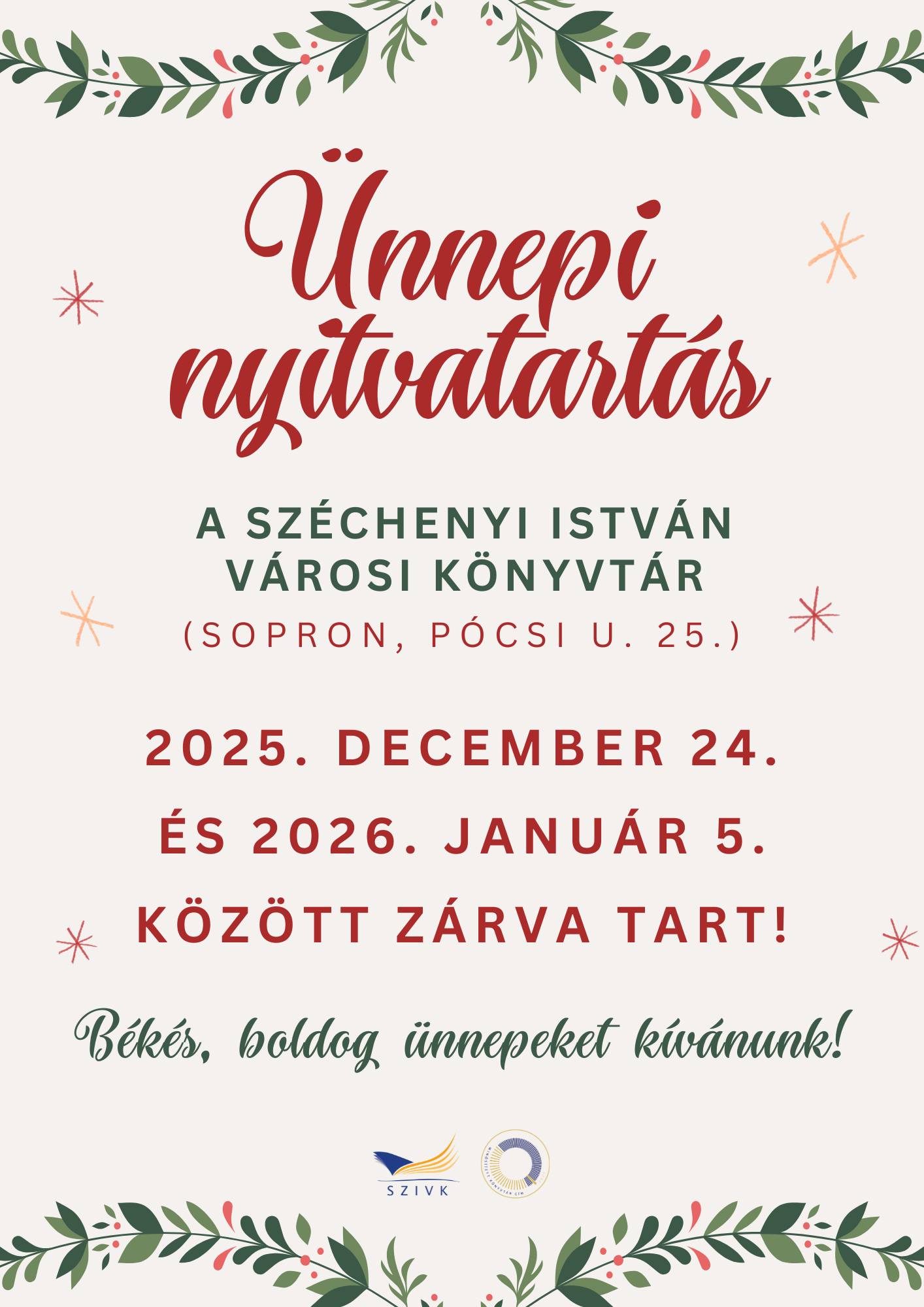 Karácsonyi nyitvatartásunk 2025