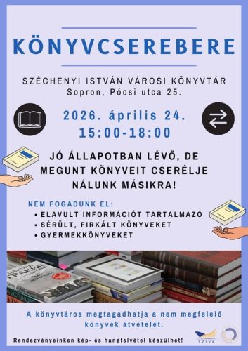 Szeretettel várunk minden csereberélni vágyót a könyvtárban, április 24-én, 15 és 18 óra között!