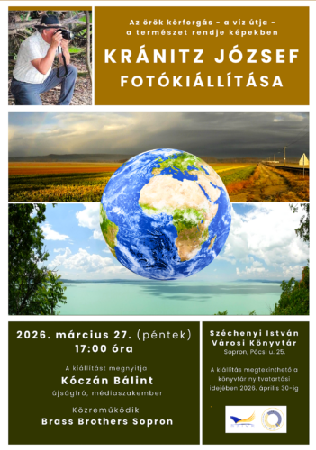Ne maradj le! 2026. április 30-ig díjtalanul látogatható Kránitz József A víz útja és a természet örök körforgása témájú fotókiállítása az emeleten.